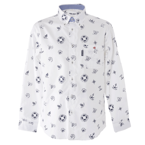長袖ボタンダウンシャツ ワイシャツ カッターシャツ 刺繍入り スマートカジュアル 23114010